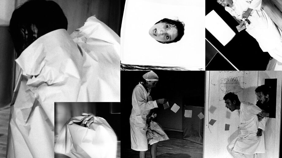 Un thème vieux comme le monde et toujours actuel: L’exploitation de l’Homme dans le monde souvent brutal du monde du travail. Un clarinettiste invoque une feuille de papier, qui sous les caresses de la musique, se plie, puis se met à danser. La feuille de papier se métamorphose en une jeune femme. À peine est elle arrivée, ébahie et déboussolée dans ce nouveau monde, qu’un homme lui fait les yeux doux. Elle cède, et se voit emprisonnée dans un bâtiment stérile, aux murs sans fin (scénographie en boîtes de cartons). Le seul moyen de racheter sa liberté est de signer un contrat de travail. Alors commence une course-poursuite vertigineuse entre ces murs d’un blanc éclatant. Bureaucratie. Lavage de cerveau. Un château de cartes va bientôt s'écrouler.