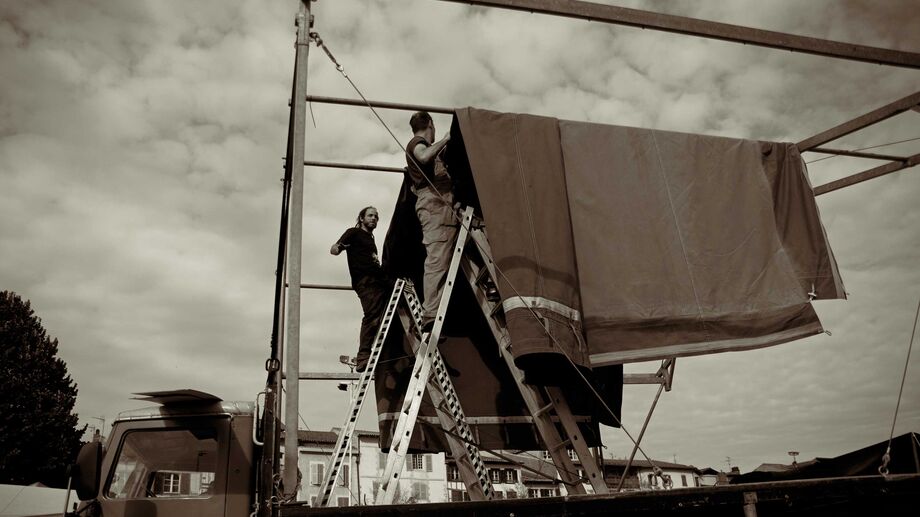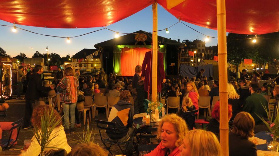 - Nous sommes à l'épreuve des intempéries ! Une tente extensible assure des places au sec !